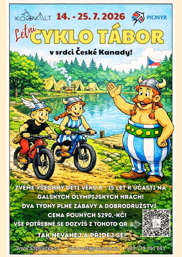 Oslovil mě Robin z 85. PS Letka z Brna, že mají v České Kanadě (na pomezí Dačic, Slavonic a Jindřichova Hradce) v termínu 14. -25. 7. 2026 volnou kapacitu pro táborový pobyt s využitím horských kol.
