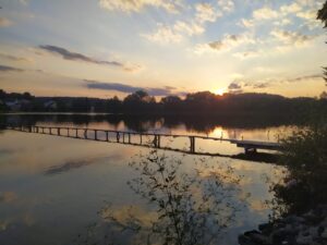 • Perfektní světelná atmosféra a příjemná kompozice se zarámováním pomocí větví nahoře. Bez nich by byla jen nudná modrá obloha.