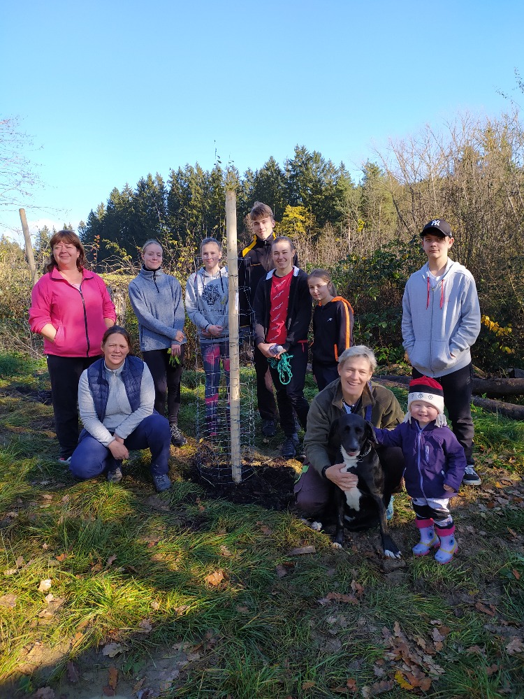 Když se našla paní učitelka přírodopisu na mateřské dovolené(členka pionýra), tak byl i realizátor, který naplánoval celou akci od vytipování stromů, pořízení, určení míst pro sázení. Pak už skoro stačilo oslovit všechny členy a nečleny a mohli jsme se sejít. Každý si dopředu zamluvil strom a tím i místo a stal se i patronem stromu na TZ.